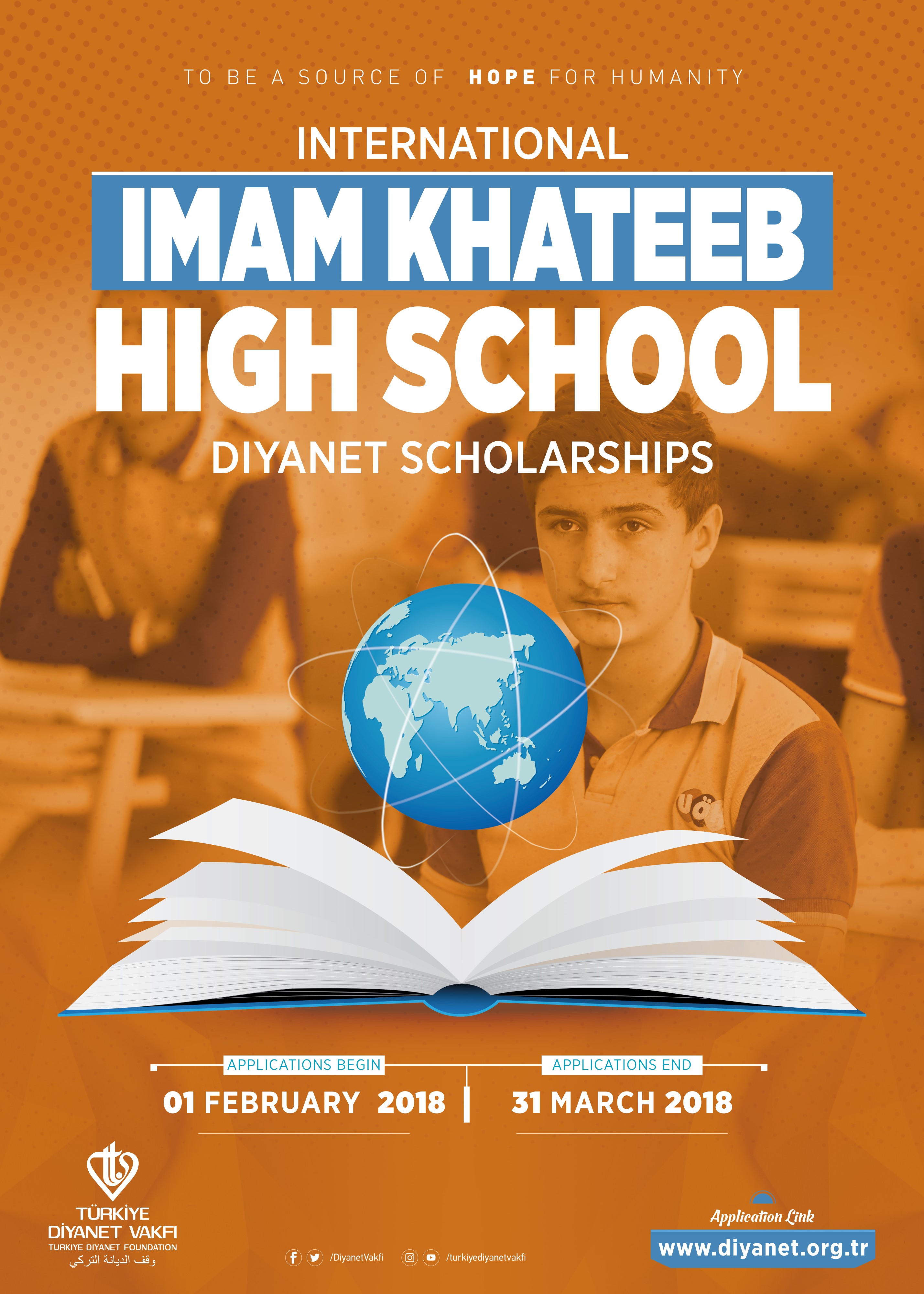 Applications for the Türkiye Scholarships for International Imam-Khatip High School Programme and for International Islamic Studies Programme have been started. Students can make online application through the website www.diyanet.org.tr untill 31 March 2018. The contact numbers and e-mail address of the Türkiye Diyanet Foundation are submitted herewith.